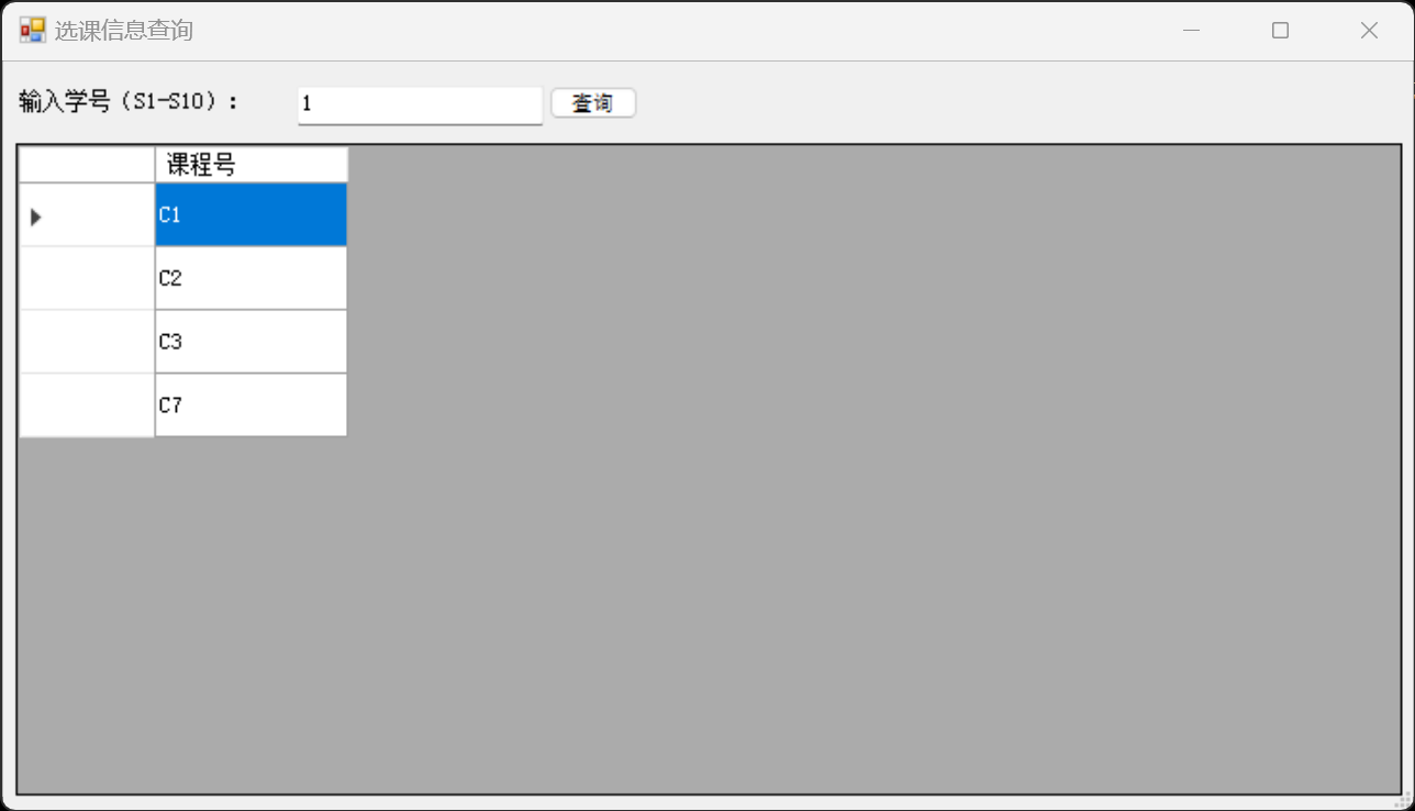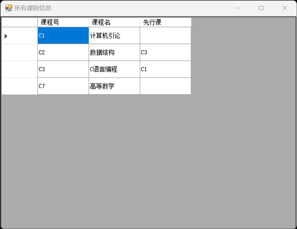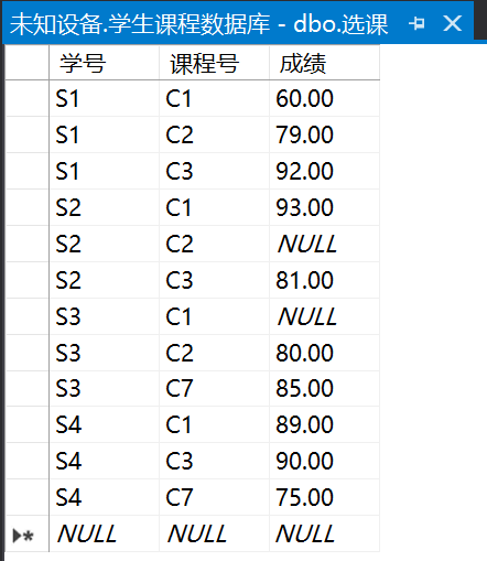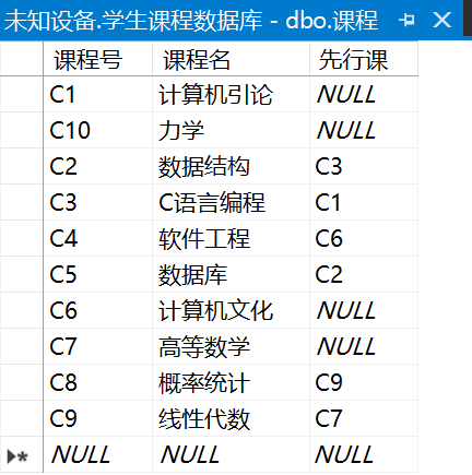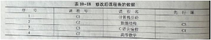 检查并修改学生_课程库的数据:使学生表与表10-11数据一致,选课表与表10-13的数据一致;课程表数据与表10-18 数据一致(修改课程数据为只有C1、C2、C3 和 C7 课程)。
