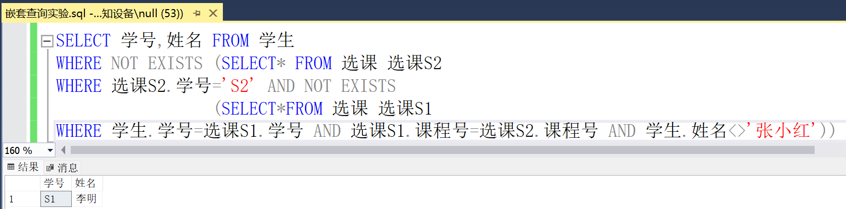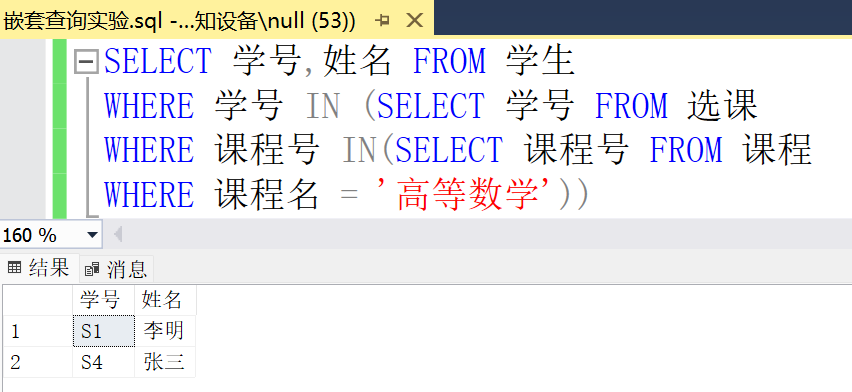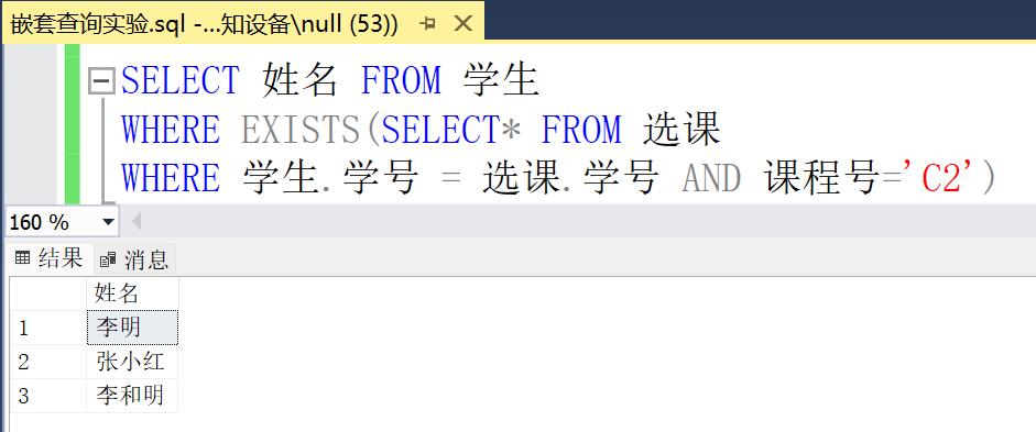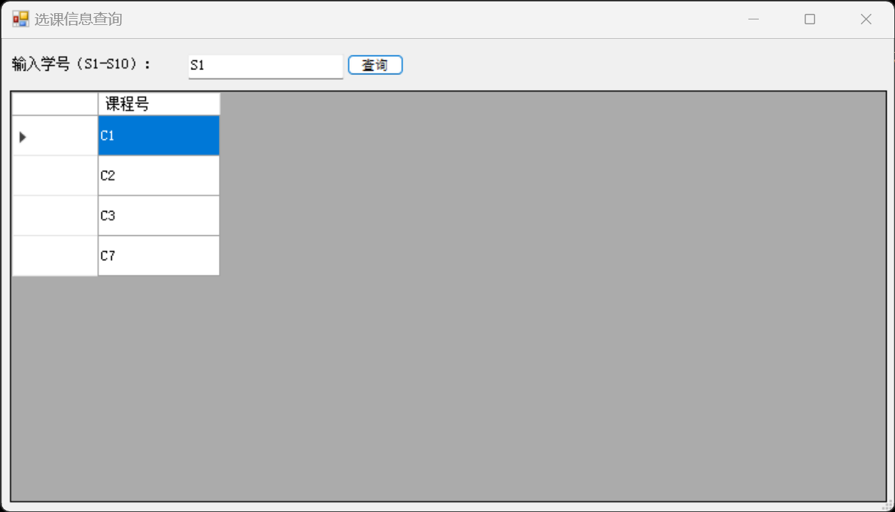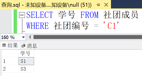1 | -- 查询1. 查询加入了编号为C1的社团的学生学号 |