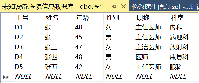 1 | UPDATE 医生 SET 职称='主任医师' WHERE 工号='D2' |