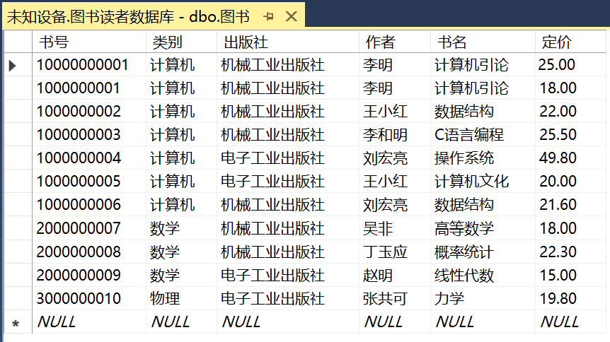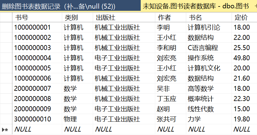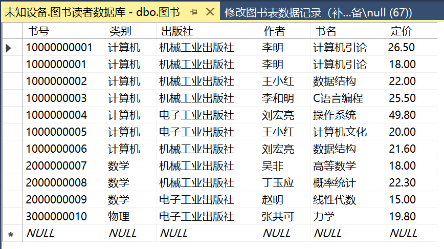 检查并修改图书读者库的数据,使之与表10-8至表10-10的数据一致;
