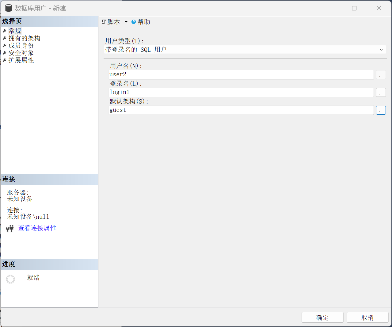 iii)在图书读者数据库中,新建数据库用户名为”user2”(登录名为”login1”),新建数据库角色名为”rose2”。