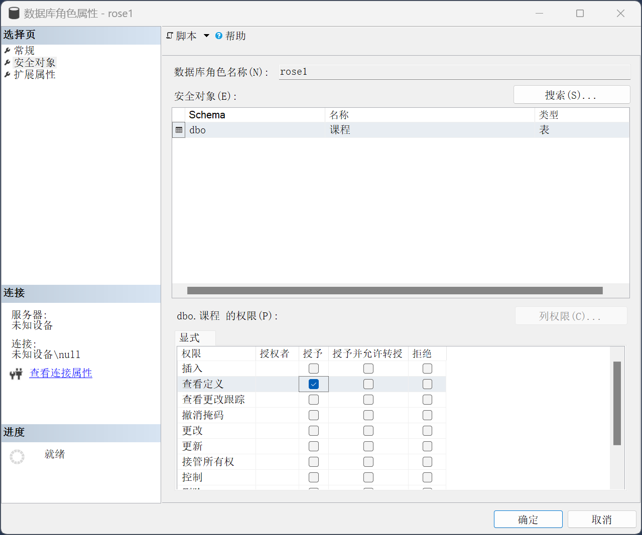 II)在学生课程数据库中,将”user1”加人”rose1”和db-owner,通过选择角色对”rose1”授权。