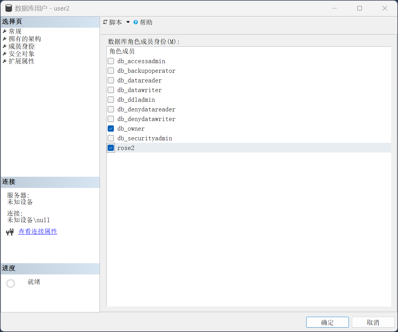 iii)在图书读者数据库中,将”user2”加人”rose2”和db-owner,通过对象(选择图书、读者和借阅表)对”rose2”授权。
