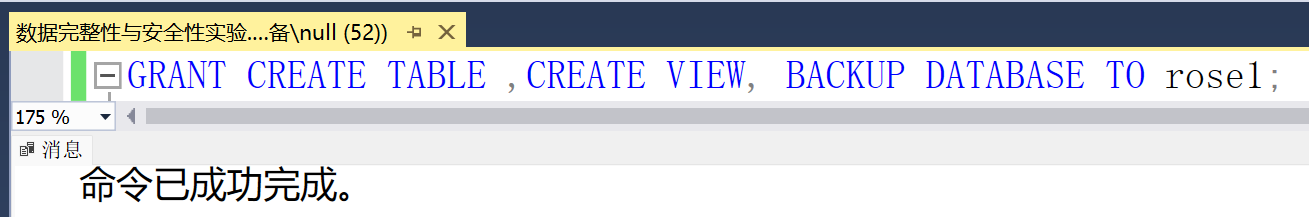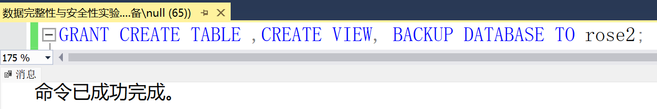 iv)使”rose2”和”rose1”都有创建表、创建视图和备份数据库的权限。